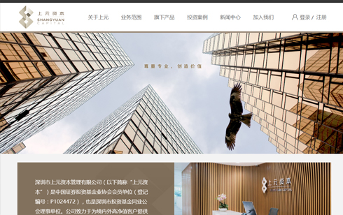 深圳市上元資本管理有限公司是中國證券投資基金業協會會員單位(登記編號:P1024472),也是深圳市投資基金同業公會理事單位。公司致力于為境內外高凈值客戶提供優質資產管理服務,專注于開展上市公司及非上市公司股權投資、財務顧問等業務。